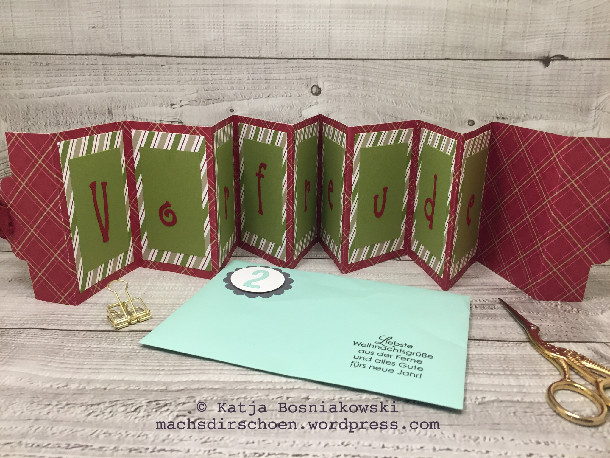 Das war das erste Mal, dass ich bei so einem Adventskalender mitgemacht habe und wusste auch vorher gar nicht was es so recht ist. Es ist eine ganz tolle Sache und einer der schönsten Adventskalender, die ich bisher hatte. Es haben sich 25 willige Kreative zusammengetan und jede hat eine Weihnachtskarte entworfen und diese 24-mal gewerkelt. Diese wurden zu der Organisatorin geschickt, in unserem Fall die liebe Yvonne Lindinger, und dann hat jede 24 verschiedene Karten zurückbekommen, dabei ist sie jeweils für die eigene Karte bzw. Türchen eingesprungen, damit man seine Karte nicht wieder bekommt).