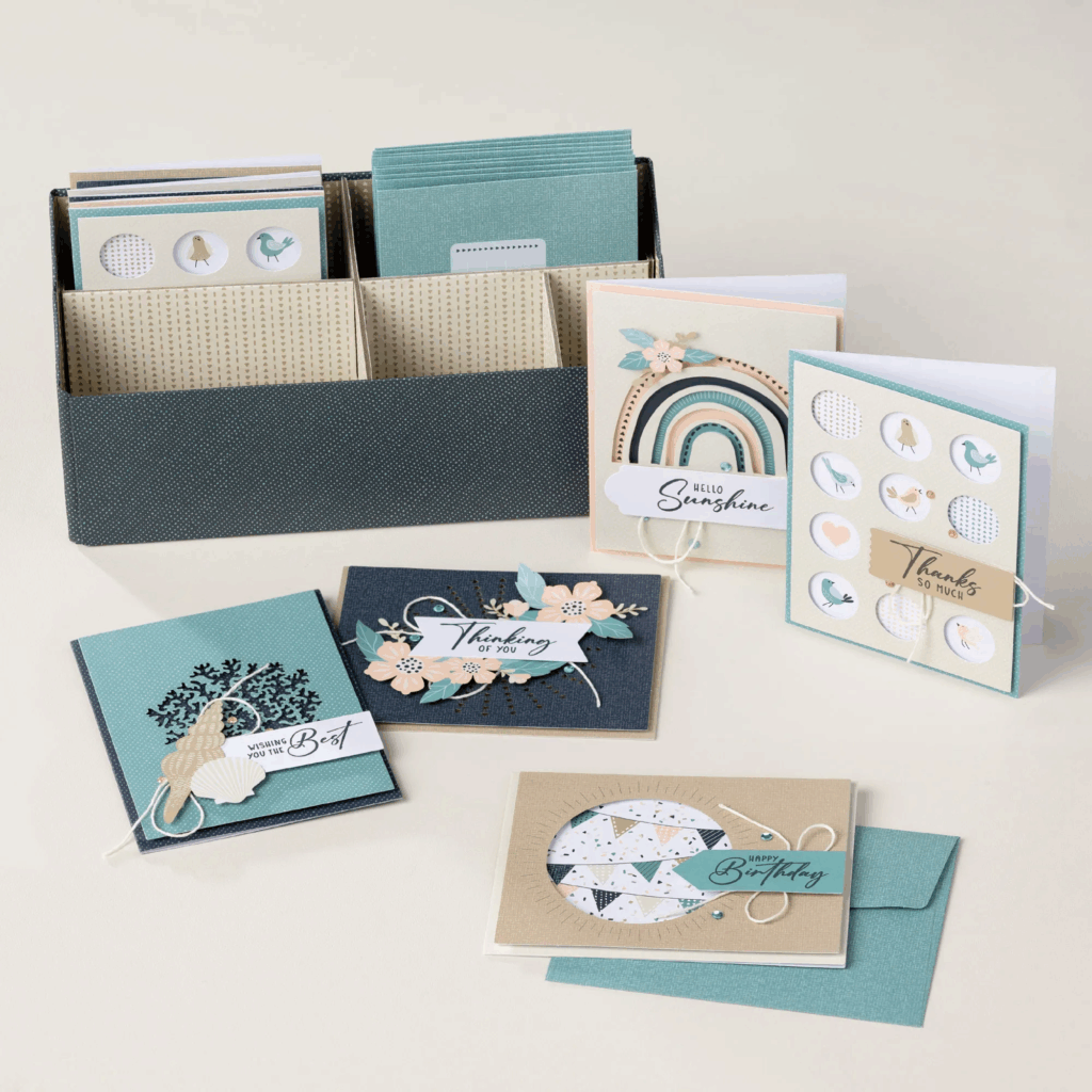 A: Selbstverständlich! Mit den Produktpaketen macht es zwar mehr Spaß, aber sie sind nicht unbedingt notwendig, um mitzumachen. Wir möchten einfach bei allen das Interesse am Gestalten von Karten wecken – die Teilnehmenden sollen erkennen, wie viel Freude das macht und dabei ganz leicht und unglaublich erfüllend ist. Gern können Sie eigenes Material verwenden oder einfach nur zuschauen.