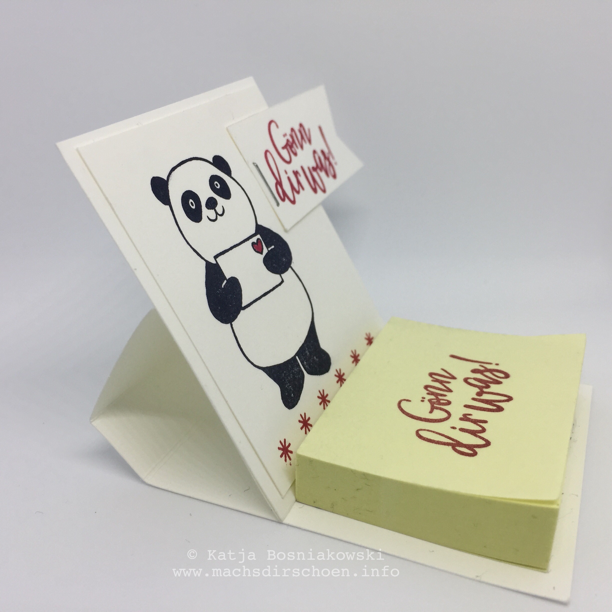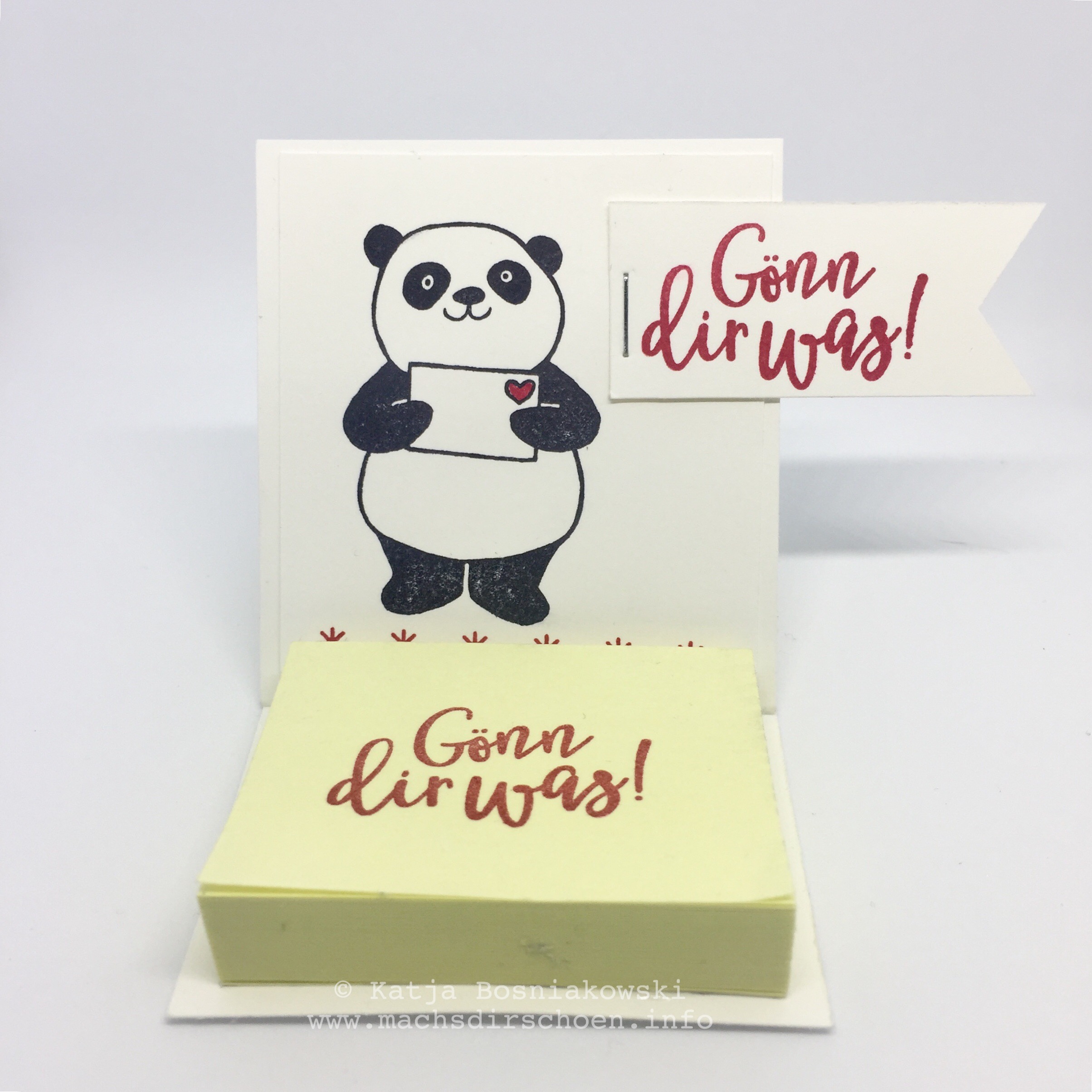 wenn ihr von mir den neuen Stampin‘ Up! Frühjahr- / Sommerkatalog 2018 bekommen habt, kommt euch der kleine Haftnotizhalter mit den Party Pandas bestimmt bekannt vor 🙂