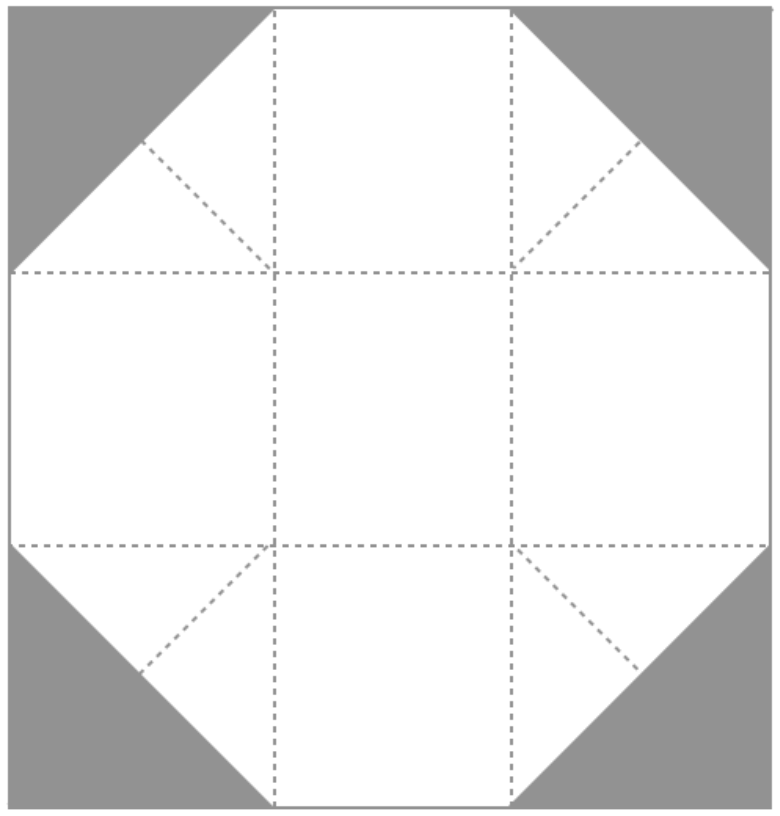 - Schneide die Ecken ab von Falz zu Falz (siehe Skizze).