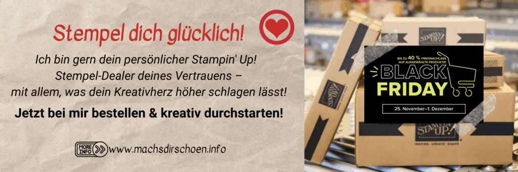 Wenn du also mehr basteln möchtest, ohne dabei mehr auszugeben, dann ist der Black Friday von Stampin’ Up! jetzt dein Moment.